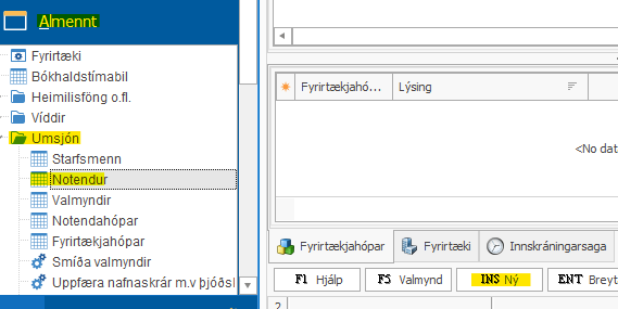 Kerfisvalmynd: Sú valmynd sem notandi á að hafa aðgang að.