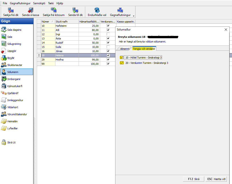 Til þess að tengja svo sölumanninn sem var stofnaður í dk þá þurfum við að opna bakvinnsluna.