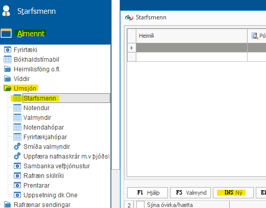 Velur númer og sækir í starfsmanninn og F12 skrá.