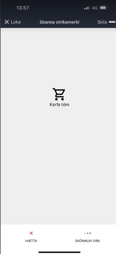 Athugið "Skanna strikamerki" er fyrir handtölvu með innbyggðum skanna. (Ekki myndavél)