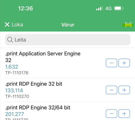 Hægt er að bæta við vöru á sölureikning með því að skanna inn strikamerki.