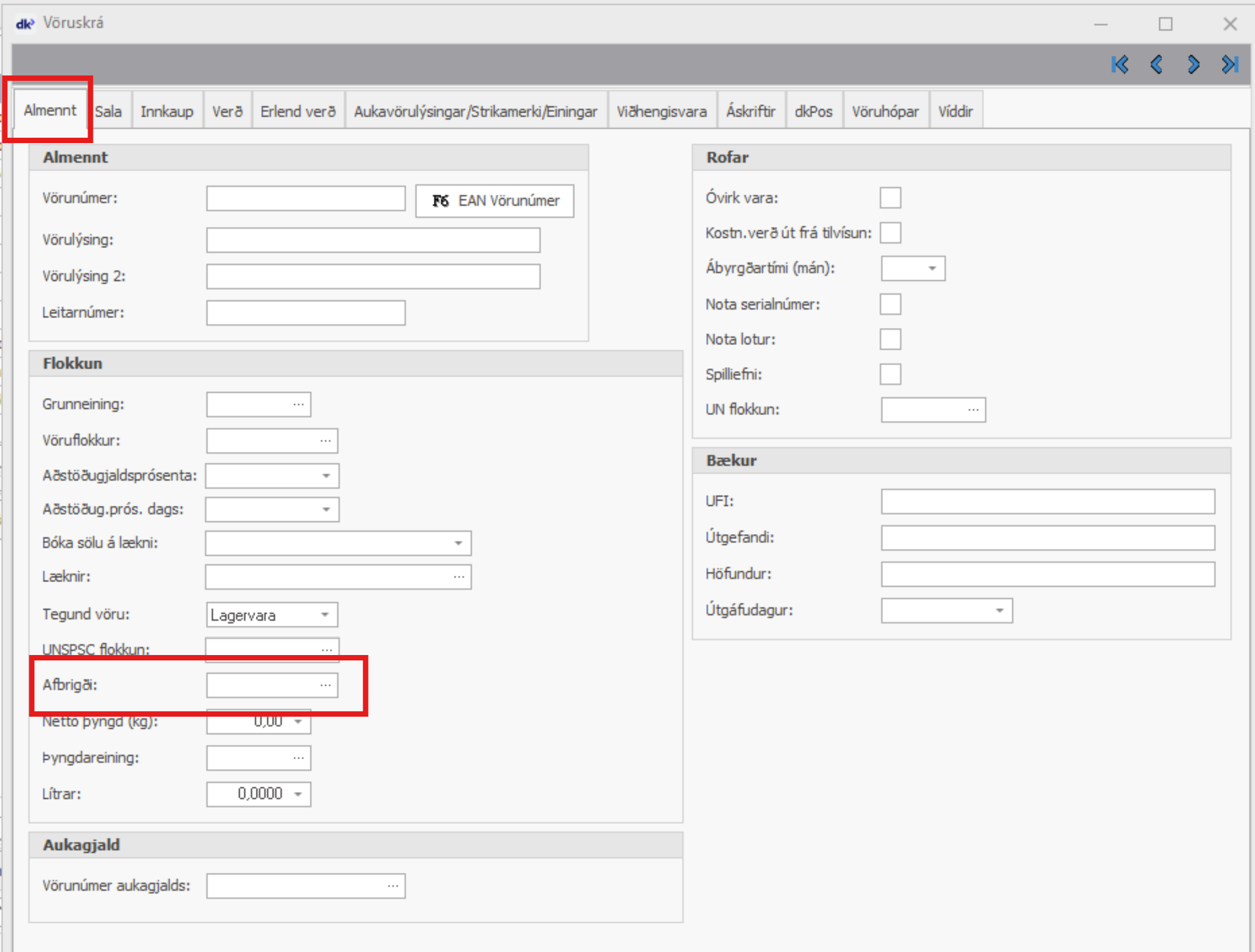 Birgðir > Vörur > opnar vöruspjaldið > Almennt > Afbrigði