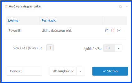 Til að stofna aðgangslykil sjá hér Auðkenningar tákn - dkPlus - dk Documents Aðgangslykill er notaður með API og/eða OData