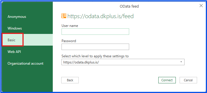 Tengja PowerBI/Excel í gegnum OData- Leiðbeiningar