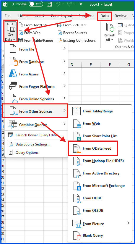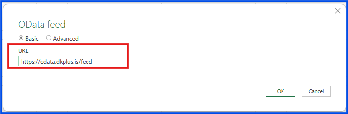 - Veldu: Get Data → From Other Sources → From OData Feed