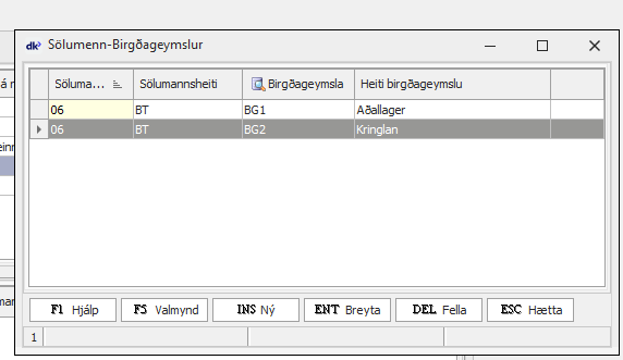 Birgðageymslur Þessi kerfiseining opnar fyrir þann möguleika að vera með lagervörur á mismunandi staðsetningum. Stofna birgðageymslu Til að stofna birgðageymslu er farið í "Birgðir" -> "Uppsetning" -> "Birgðageymslur" Smella á "INS Ný" hnappinn Nýju ...