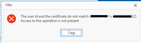 Ef þið fáið upp svona villu: "The user id and the certificate do not match..." þá þarf að hafa samband við bankann og láta tengja kennitölu dk við kennitölu fyrirtækisins sem er að nota rafrænu skilríkin.