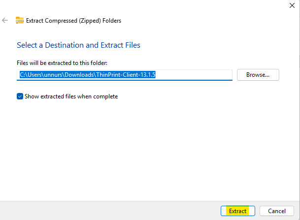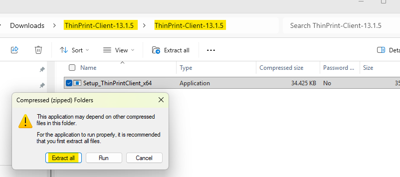 Opna svo skránna og ýttu á Setup_ThinPrintClient_x64