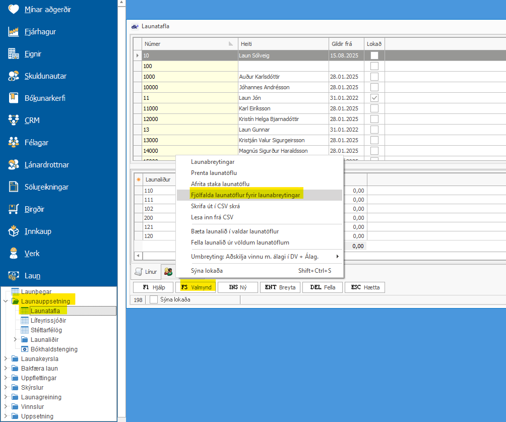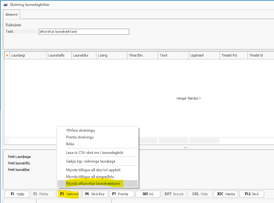 heiti og svo farið í [F5 valmynd] og valið að mynda afturvirkar launahækkanir.