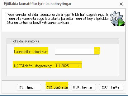 launatöflum eða velja allar, og svo setja inn sömu gildir frá dagsetningu og var valin í fjölföldun