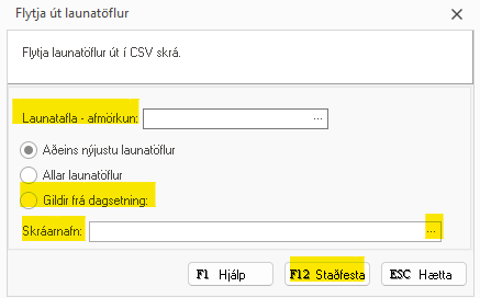 launatöflur eru fluttar í csv skrá er hægt að hafa afmörkun á