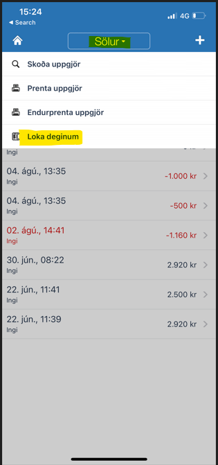Í kassa uppsetningu en einungis fyrir iPos / dkPos mobile / appið. Opna bakvinnslu / dkPos í hýsingu. Stillingar - Kassa uppsetning - Sérsníða - Loka deginum sjálfkrafa. Mjög gott að hafa þetta á iPad og í appi í posa.