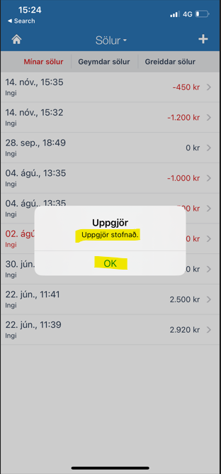 að fá miðann til að sjá hvað seldist á ipadnum. (kassanum)
