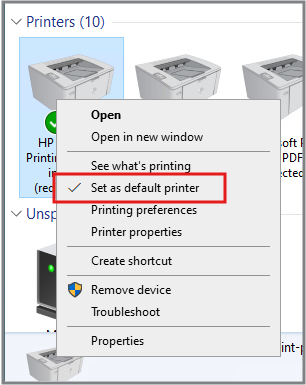 - Veljið: Set as default printer