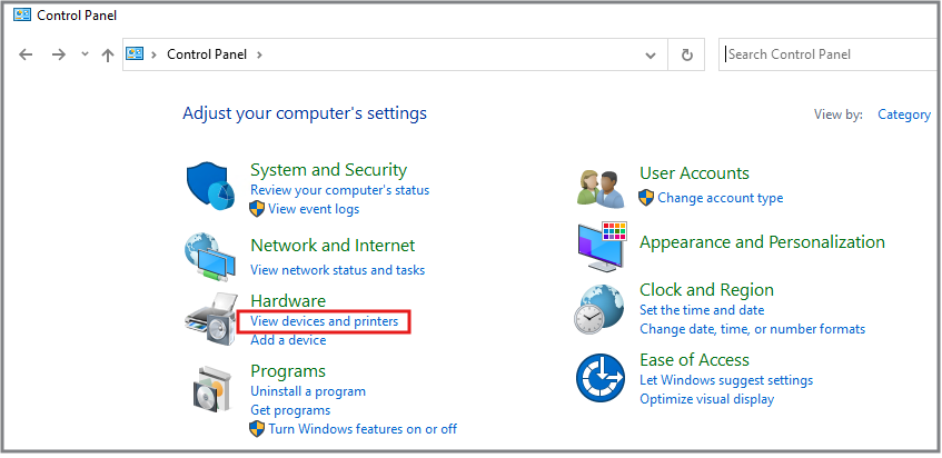 6. Farið í View devices and printers: