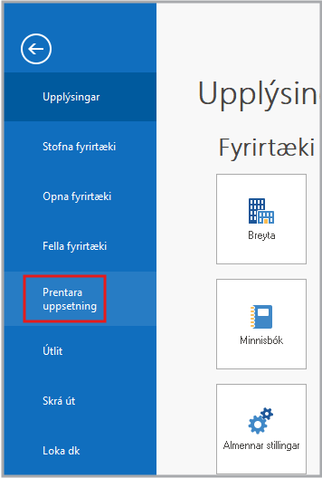 - Farið í Grunnur > Prentara uppsetning.