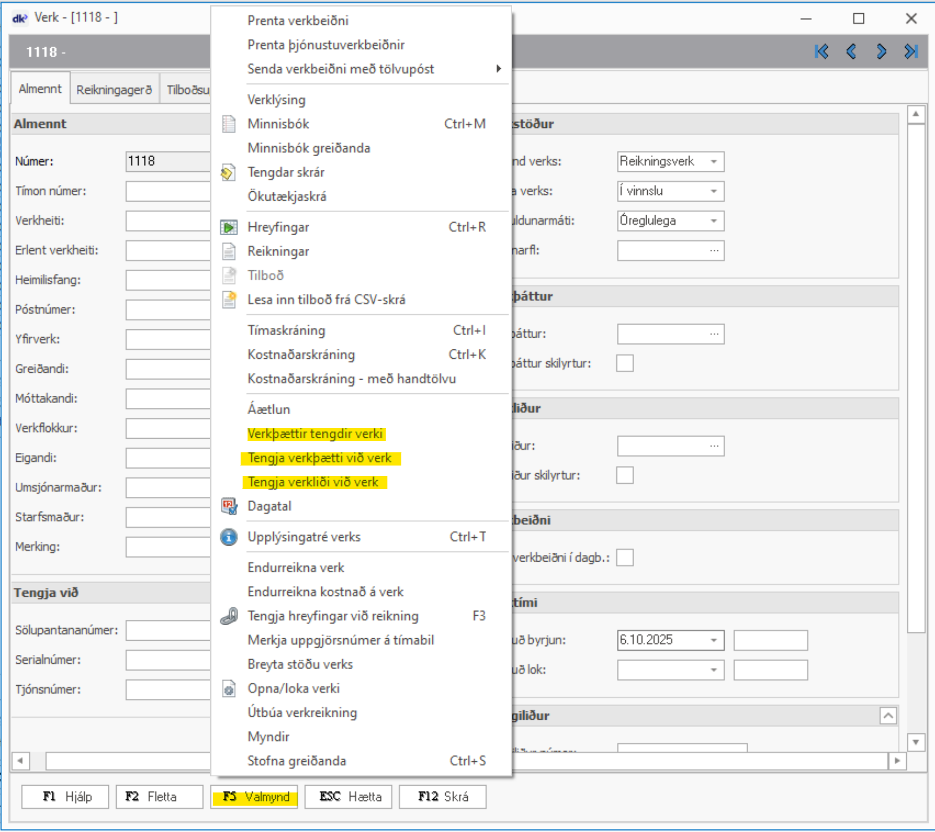 Það er hægt að skilyrða verkþætti og verkliði á verk og setja ákveðna verkþætti á verk.