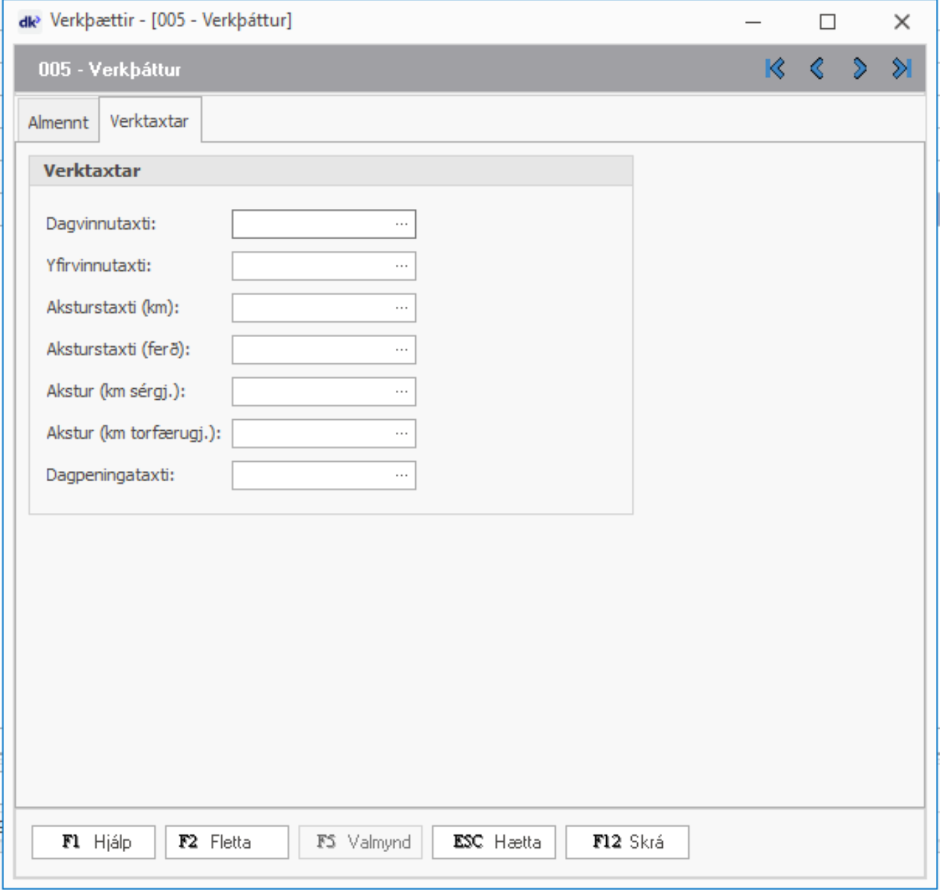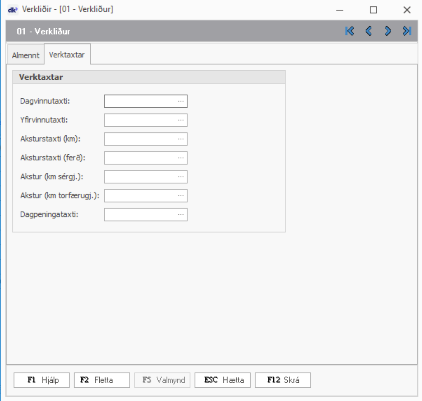 Skrá þarf viðeigandi taxta á verklið á Verktaxtaflipanum.