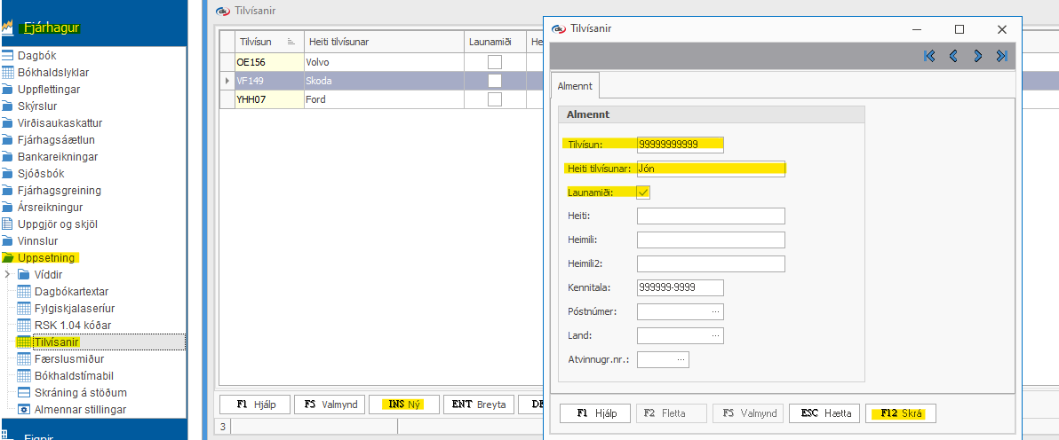 Fjárhagur > Uppsetning > Tilvísanir > INS Ný