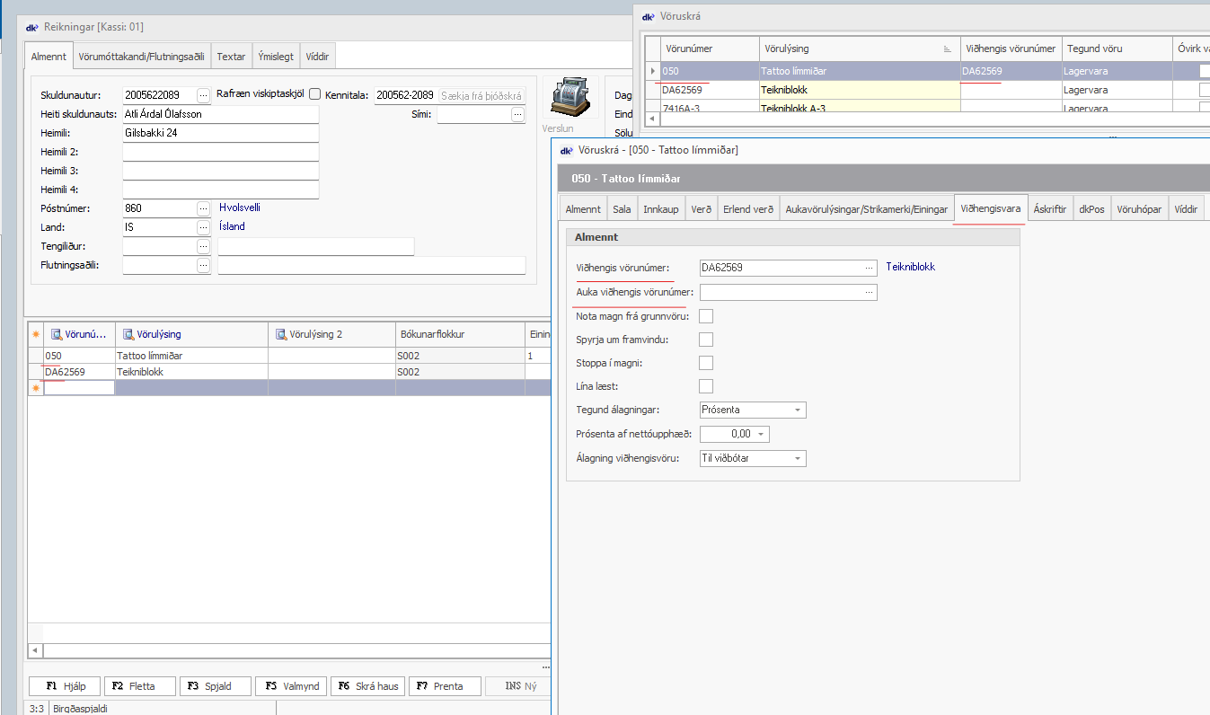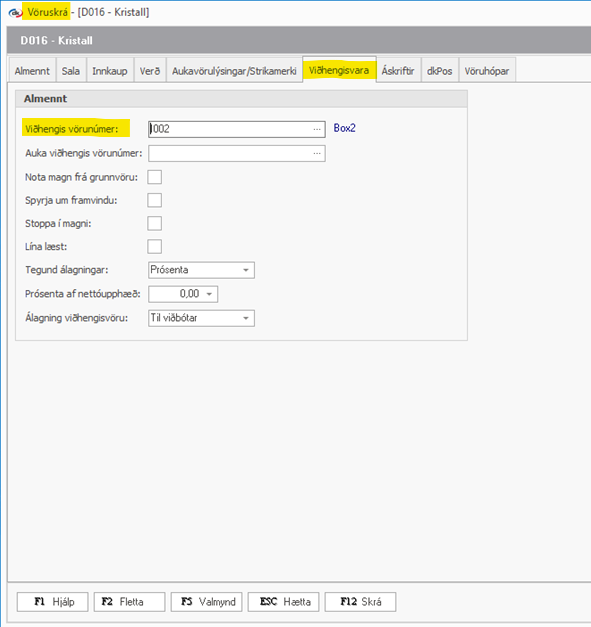Merkja á flipann viðhengisvara á viðkomandi vörunúmeri allt að 2 viðhengis vörunúmer.