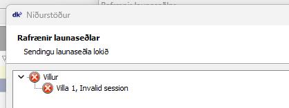 Villa senda rafræna launaseðla: Villa 1, Invalid session