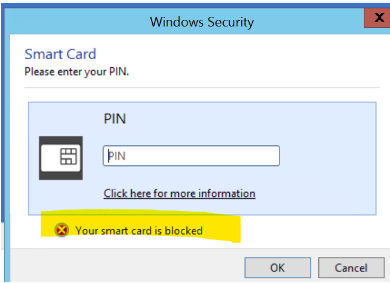 Ef þið fáið villuna "Your smart card is blocked" þá þarf að athuga hvort það sé hakað í rétt skilríki.