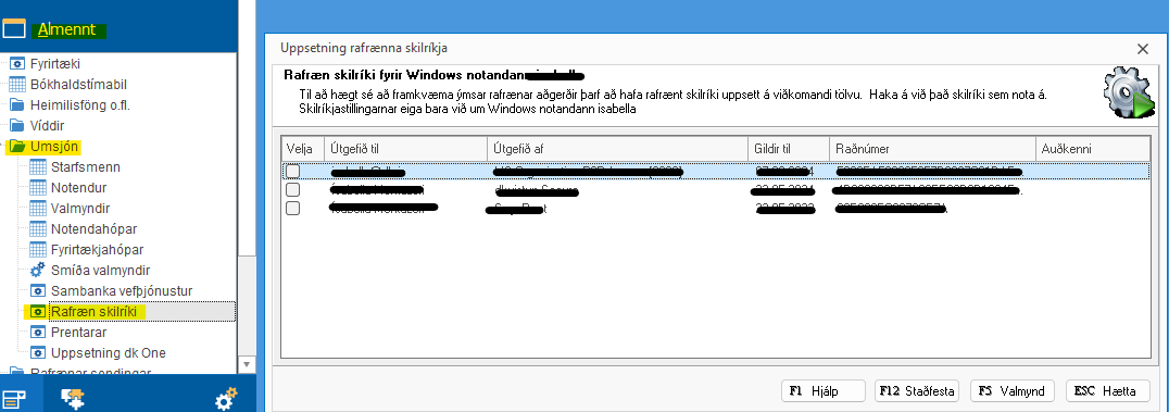 Sækja bankahreyfingar - The requested key container does not exist on the smart card villa Ef eftirfarandi villumelding kemur upp við innlestur bankahreyfinga þá þarf að athuga hvort rafræn skilríki séu tengd undir Almennt > Umsjón > Rafræn skilríki. ...